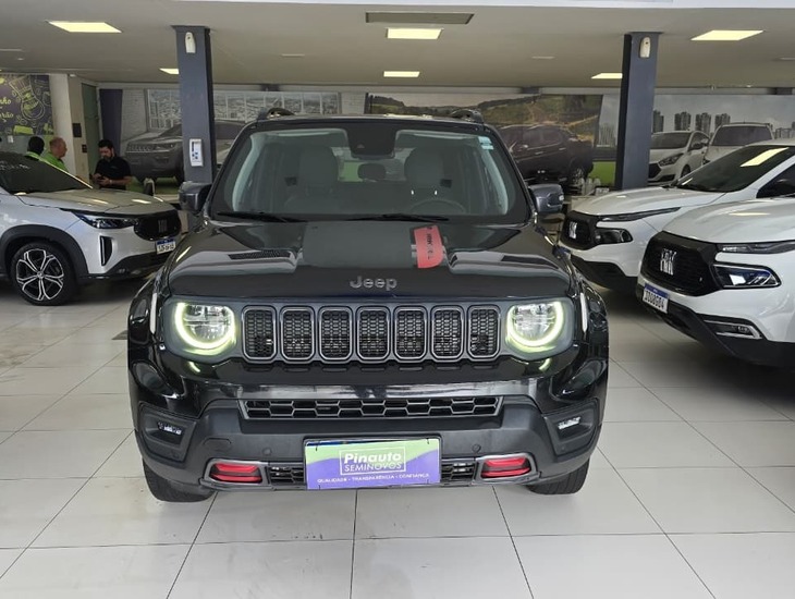 A Jeep se destaca pela robustez, versatilidade e tecnologia de ponta, oferecendo uma experiência única de condução em qualquer terreno. O Jeep Renegade Trailhawk T270 1.3 Turbo 4x4 é o SUV perfeito para quem busca aventuras sem abrir mão de conforto e segurança. Com um design arrojado e moderno, esse veículo se destaca pela sua economia de combustível e potência do motor turbo. Com tração nas quatro rodas, o Renegade Trailhawk garante estabilidade e segurança em terrenos variados, tornando cada viagem uma experiência emocionante e inesquecível. Não perca tempo, entre em contato com a concessionaria Pinauto Seminovos e garanta já o seu Jeep Renegade Trailhawk T270 1.3 Turbo 4x4!
